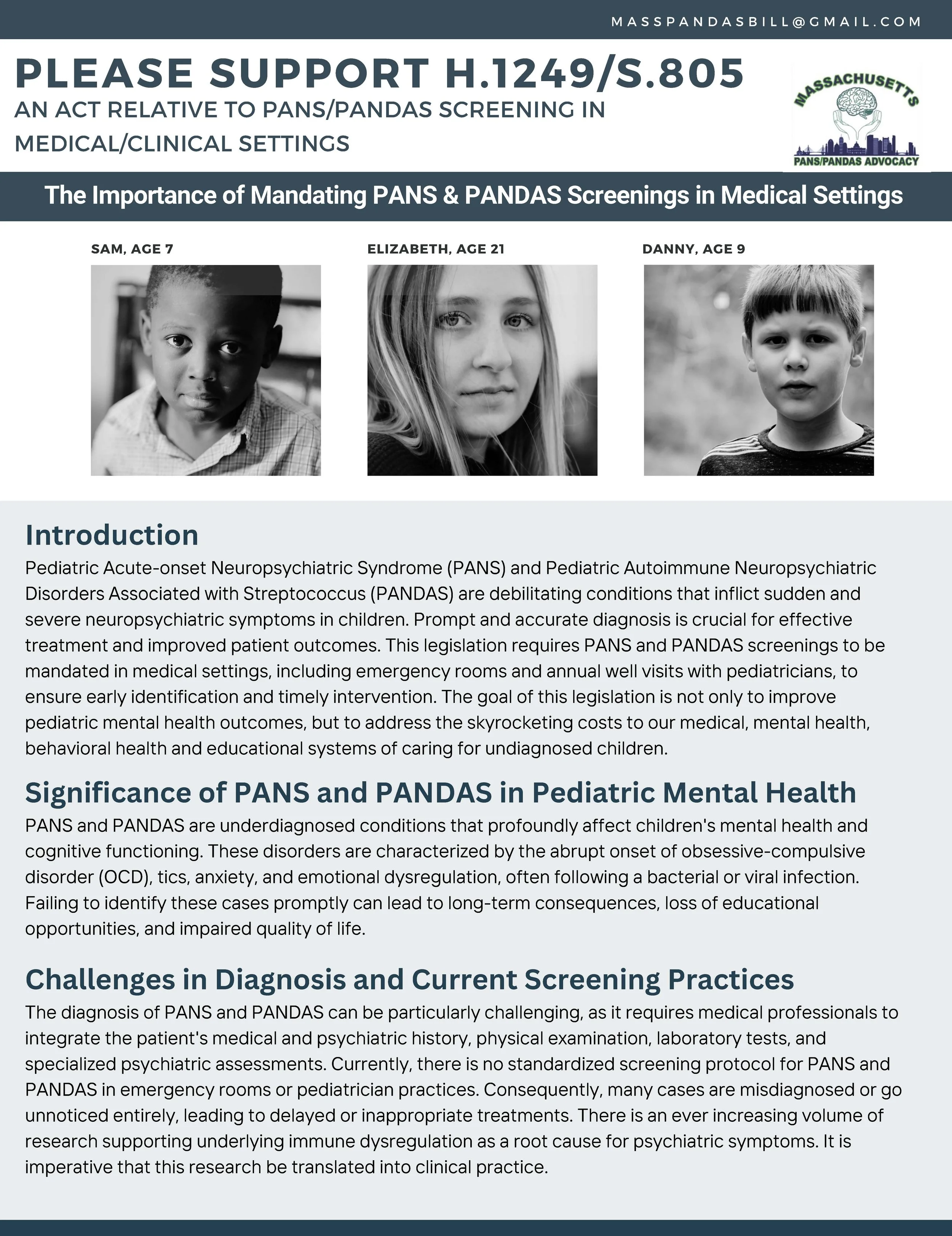 2025 ~ PLEASE SUPPORT H.1249/S.805 AN ACT RELATIVE TO PANS/PANDAS SCREENING IN MEDICAL/CLINICAL SETTINGS